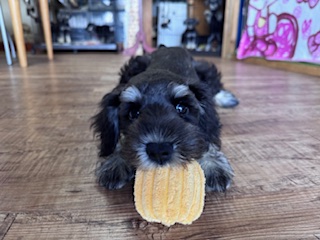 | コメント | ひまわり母さんとびんぞう父さん(ソルト&ペッパー)の子 順調にスクスク成長中♡ キレイにお鬚や眉毛が出来てきています! ヤンチャ君な長男君♬たくさん走り回って足腰もしっかりしています。 お写真では伝わらない可愛さを是非会いに来てホッコリしに来てください♡ 9月18日 見学開始 10月12日 最短お迎え可能 |