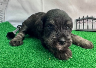 コメント | ひまわり母さんとびんぞう父さん(ソルト&ペッパー)の子 真っ黒のお顔ですが、眉は少し白いです。 これから白いお鬚がでてくるのかな? 変化が楽しみです! まだ寝ているばかりで、コロコロととてもかわいいです♬ お写真では伝わらない可愛さを是非会いに来てホッコリしに来てください♡ 9月18日 見学開始 10月12日 最短お迎え可能 |