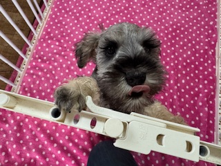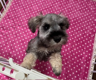 | コメント | つくし母さん(ソルト&ペッパー)とカゲ父さん(ブラック&シルバー)の子 ベテラン母さんのつくし、上手に子育てしています♬ 今はお母さんとも離れ、兄妹・従妹と毎日運動会! 面倒見が良いお兄ちゃんです♡ 2月19日(1.88㎏) 混合ワクチン1回目接種済 パテラ・心音・歯並び・眼球・検便など問題はありませんでした。 元気にスクスク成長中です! 3月19日(2.82㎏) 混合ワクチン2回目接種済 1回目同様問題はありませんでした。 ※ワクチン2回目より 6,600円/回頂いております。ご了承ください。 お写真では伝わらない可愛さを是非会いに来てホッコリしに来てください♡ 前もって言っていただければ、見学当日お迎えも可能です。 |
